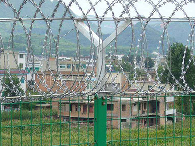 监狱围栏是一种新型防护网,由锐利尖角镀锌钢板或不锈钢薄板做刀片,钢丝做芯线组合而成的防护器材该产品具有吓阻、防翻越等效果,材质坚硬,高强度,高张力,造型设计独特,不宜触摸,因而能达到较好的防护隔离效果。还具有施工简便,经济实用等优点。