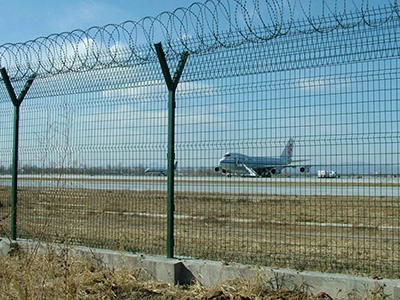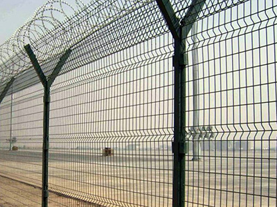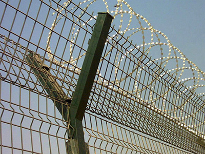 机场护栏网又称作“Y型安全防御护网”,是由V型支架立柱加强型焊接片网,安全防盗连接件和热镀锌刀片刺网组成强度和安全防御性级别很高。被广泛应用在机场,军事基地等高安全场所。